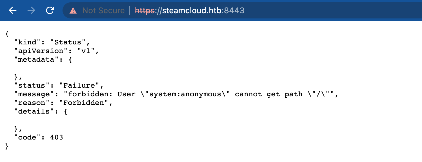 | {"kind":"Status","apiVersion":"v1","metadata":{},"status":"Failure","message":"forbidden: User "system:anonymous" cannot get path "/nice ports,/Trinity.txt.bak"","reason":"Forbidden","details":{},"code":403}