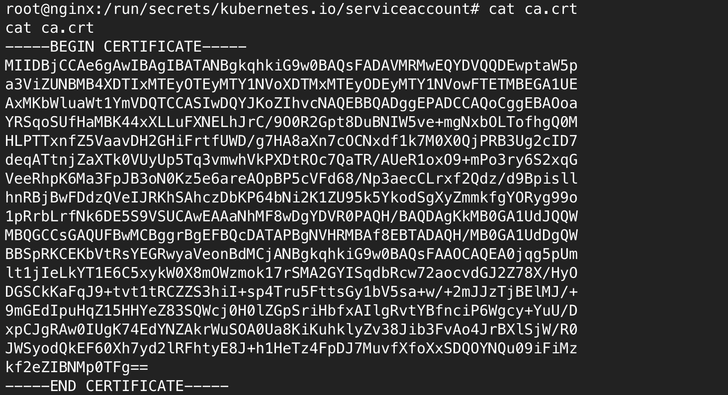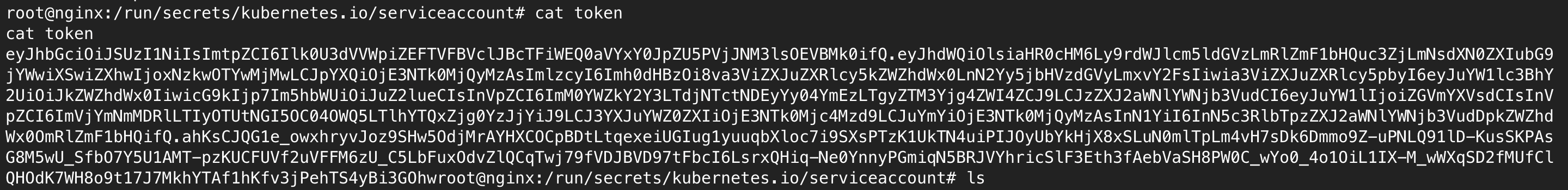 Let’s go inside the /run/secrets/kubernetes.io/serviceaccount